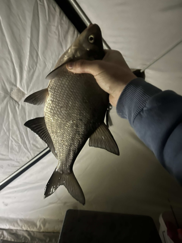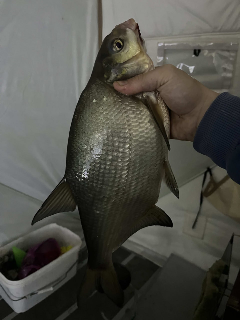На этом же водоёме Александр был с 3 до 5 утра, потом с 9 до 9.30. Он делится с коллегами, что ловит на глубине 6,2 метра. «Сейчас по чайной ложке в час, готовлюсь ко второй ночи,» — сообщает рыбак.