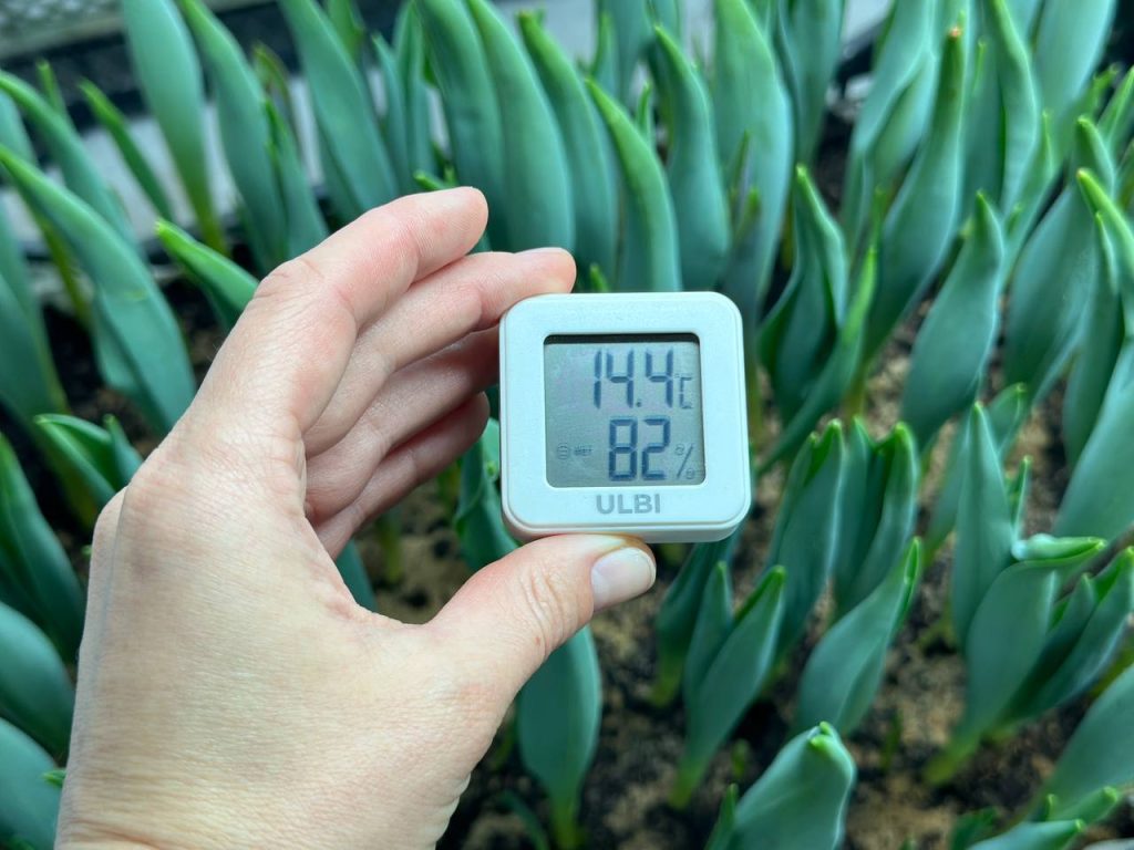 – Очень важно следить за температурой и влажностью. В каждой из трёх комнат дома, где растут тюльпаны, установлены термометры, которые измеряют температуру и влажность в помещении – любое отклонение от показателей может привести к гибели растений. Вентиляторы работают, чтобы воздух свободно циркулировал. Ежедневно в 5 часов вечера свет в комнатах автоматически гаснет, а вентилятор заканчивает свою работу.