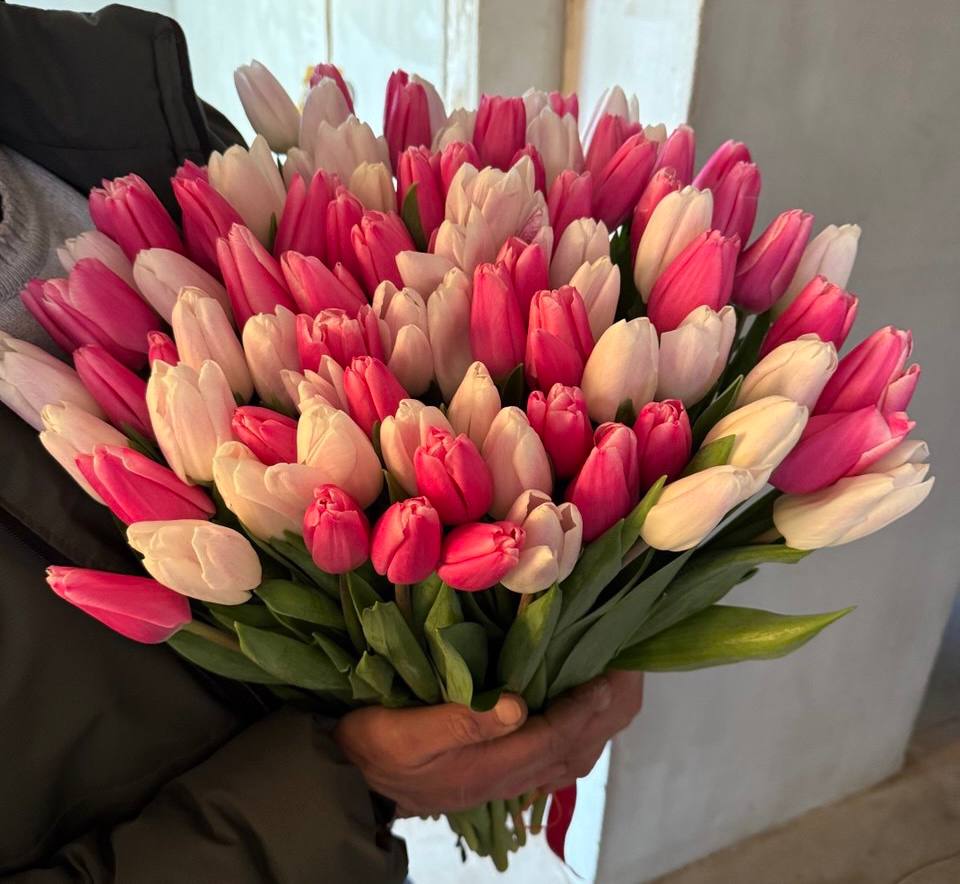 В этом году у хозяев около 17 сортов тюльпанов – классические и пионовидные, с различными вариациями цветов. Среди них есть как ранние, так и поздние. В прошлом году люди чаще спрашивали розовый цвет, хотя каждый год это меняется в зависимости от тенденций.