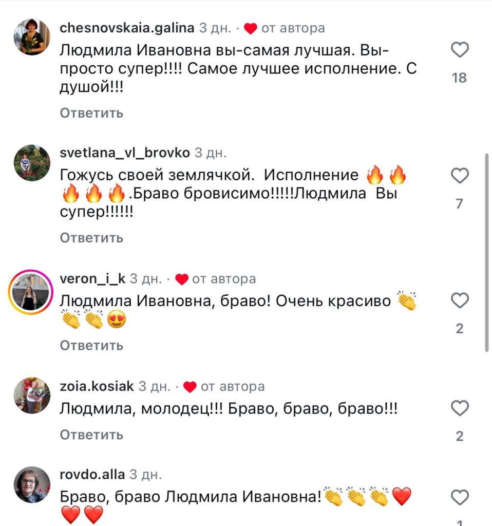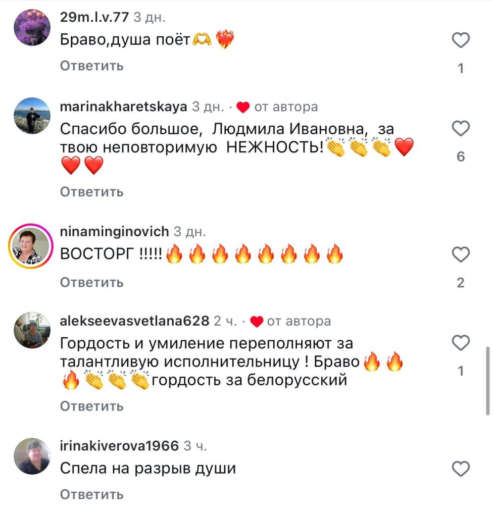 Зрители из Вилейского района активно поддерживают свою землячку, оставляя положительные комментарии и лайки под видео с ее выступлением. Люди пишут: