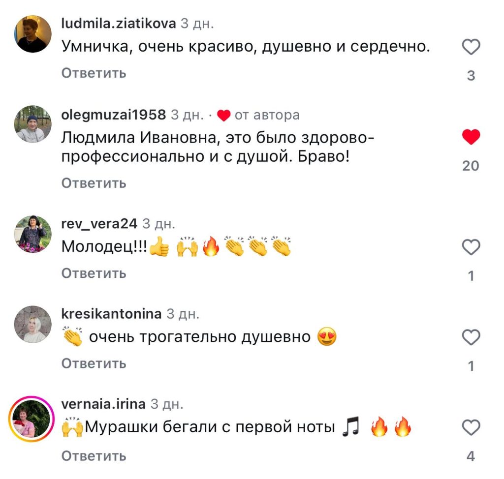 - «Гордость и умиление переполняют за талантливую исполнительницу! Браво!».