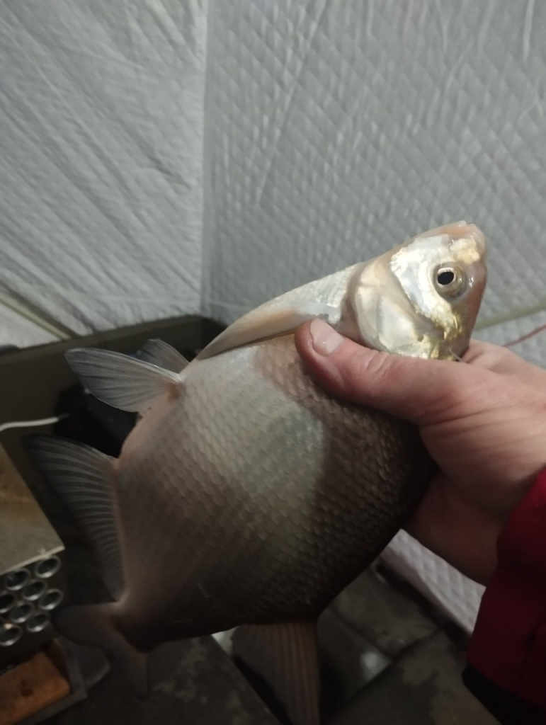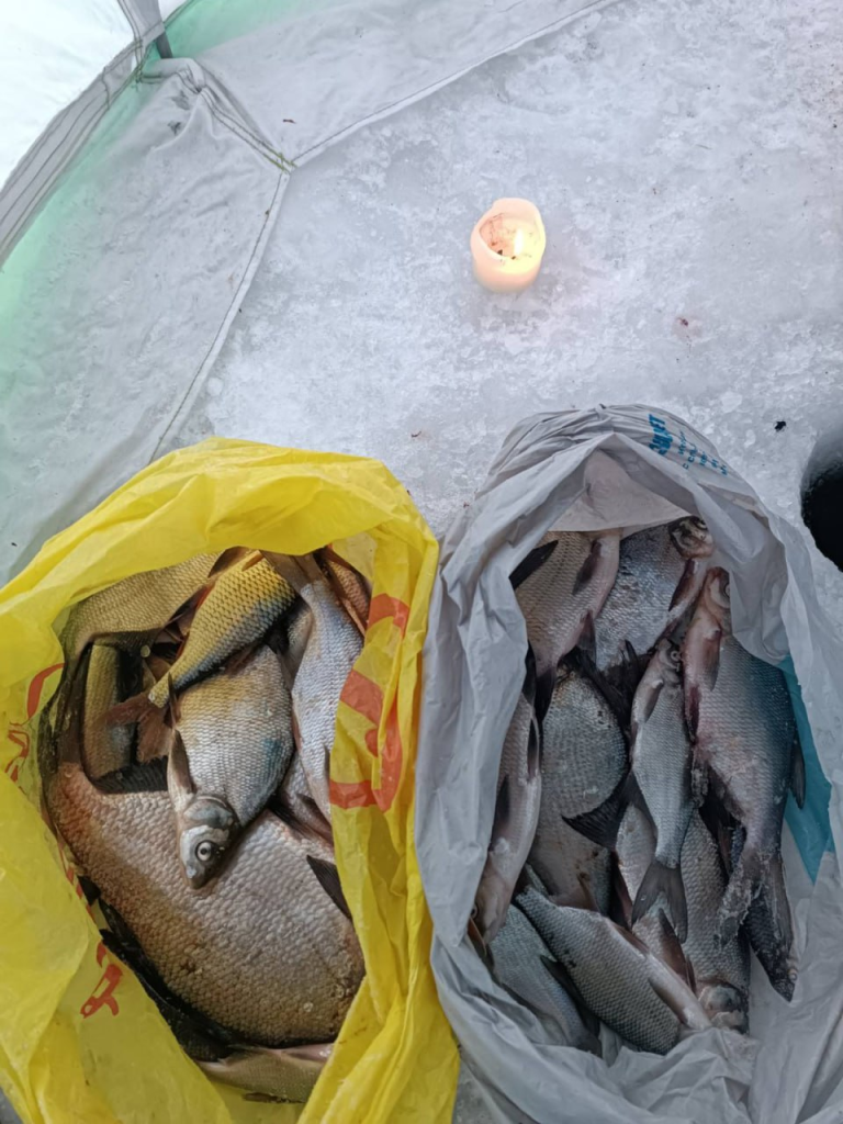 — Щука клевать отказывалась — ноль загораний флажков на жерлицах. Пробовали ловить и на глубине, и на мели с камышом. Зато, несмотря на мороз, отлично брал нормального размера подлещик, — уточняет он. — Поклевки на глубине 9,2 м. С утра хорошо работал поплавок, а к обеду рыбка поднялась и стала лучше клевать на мормышку.
