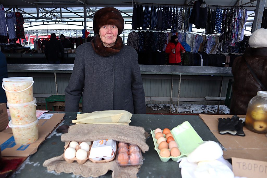 В базарную среду, 21 января, когда на улице было минус 16, у прилавков стояли всего четыре человека. В воскресенье, 8 февраля, мороз был в два раза слабее, всего минус восемь, а торговцев в этом павильоне журналист насчитал в три раза больше – 12 человек.