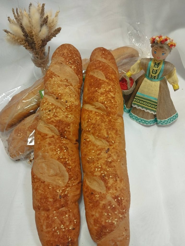 Багет «Геленовский пикантный» — это булочное изделие, вырабатываемое из смеси муки пшеничной высшего сорта, глютена пшеничного с добавлением сахара, масла подсолнечного рафинированного и другого сырья, с отделкой верхней поверхности смесью «Пикантино». В одной упаковке — 2 багета, срок годности — 4 суток в упаковке.
