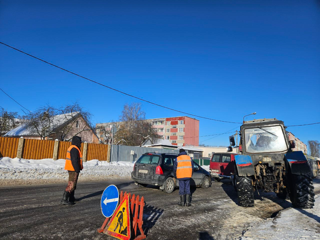 Молодечненцы к временным неудобствам отнеслись с пониманием — спокойно садятся в автобус, объезжают ограждения, уступая дорогу друг другу.
