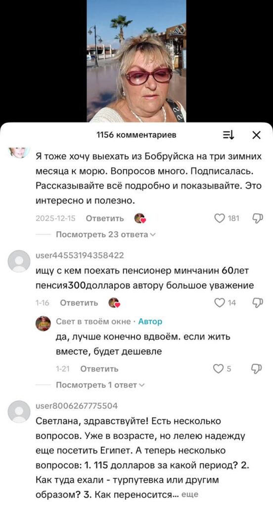 65-летняя минчанка рассказала в ТикТоке, как ей зимуется в Египте на белорусскую пенсию