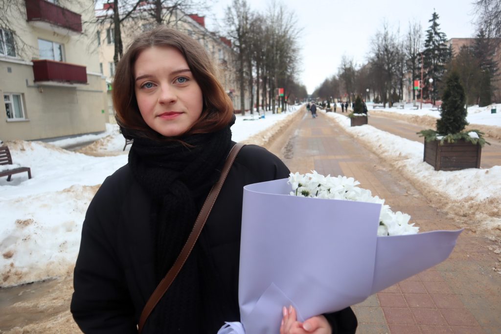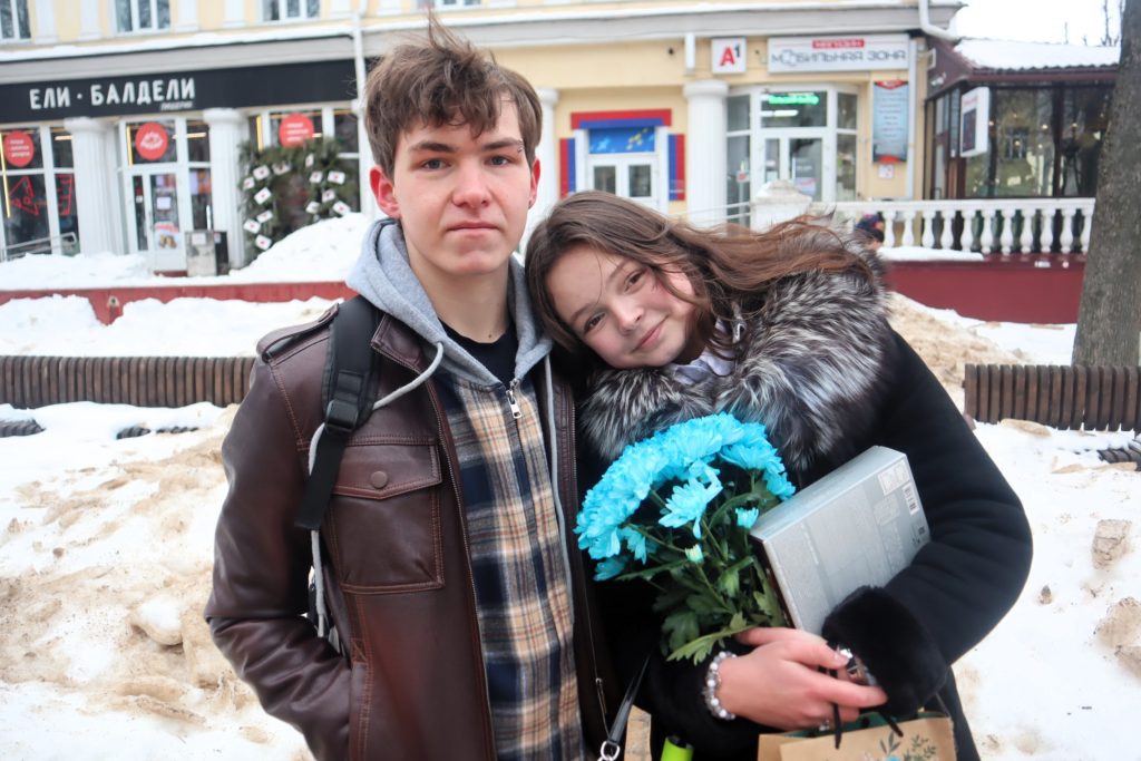 – Я со своей девушкой уже почти полтора года встречаюсь. Эти цветы – ей и её маме, – рассказывает Егор. – Девушку зовут Полина, а ее маму – Вероника. Полина, я тебя очень сильно люблю. Всё. Я не знаю, что еще сказать. Неожиданно вы подошли. Самое лучшее в Полине то, что она по-настоящему умеет любить.