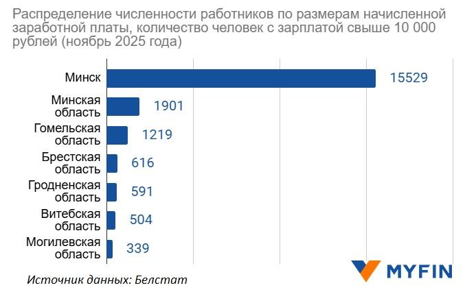 Лидером по количеству самых богатых работников является Минск – 15 529 человек.
