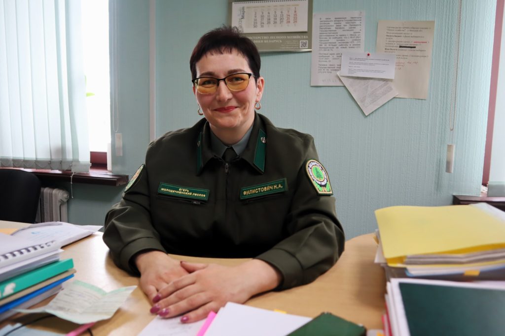 В кабинете Молодечненского лесничества поговорили с Натальей о лесе, о том, что отстреливать зверей жалко, но если популяцию лосей не регулировать, но они придут к нам в огороды. А также о том, что лес для егеря Натальи Филистович занимает громадное место в её жизни, хотя вязать и выпекать вкусняшки для родных иногда тоже очень хочется.