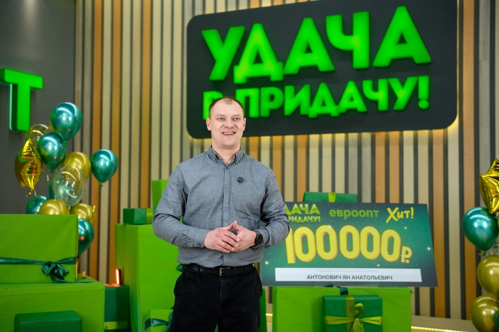 6 февраля в прямом эфире состоялся розыгрыш январского тура игры «Удача в придачу!». Фантастические три денежных приза по 100 000 рублей, два приза по 50 000 рублей и 10 000 сертификатов на покупки нашли своих счастливых обладателей! В розыгрыше участвовали свыше 5 млн игровых кодов и 1,8 млн специальных игровых кодов. Одним из счастливчиков стал наш земляк Ян Антонович из Молодечно — он сорвал куш в 100 000 рублей!