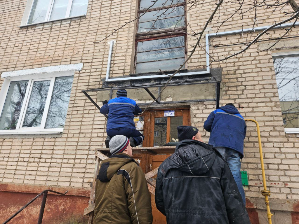 В Молодечно над подъездами, где обрушились козырьки, устанавливают новые