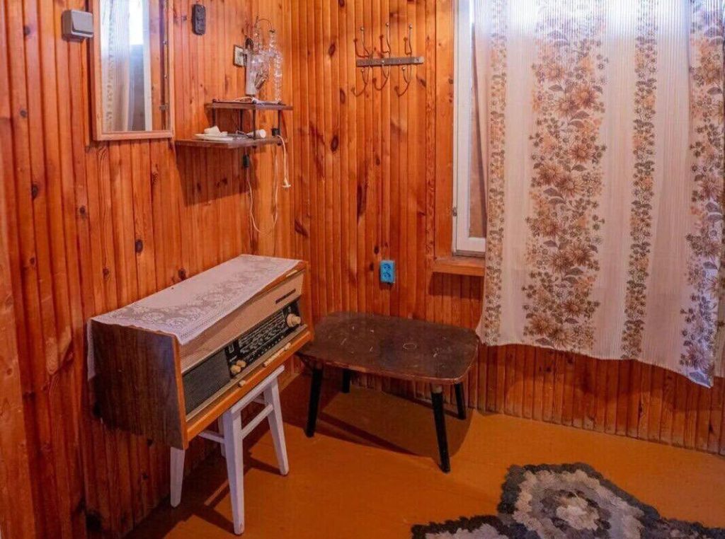 Здесь дача построена в 1983 году и, судя по фото, недавно заново отделывалась: снаружи сайдинг, на крыше шифер, внутри — свежая вагонка.