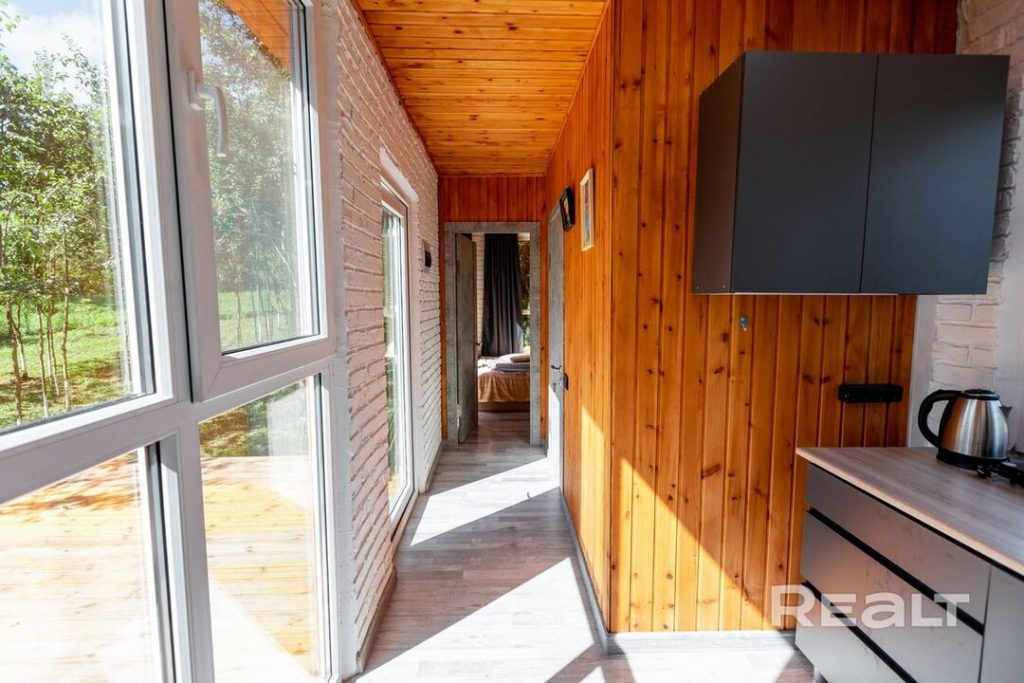 Общая площадь – 30 м2. Внутри находятся кухня-гостиная, спальня и санузел. Отапливается кондиционером, подведены водопровод и канализация.