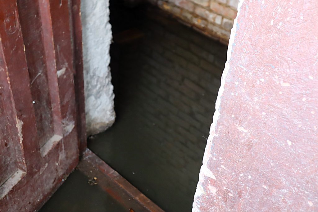 Во время общения с журналистом подвал между третьим и четвёртым подъездами был подтоплен до ступеней лестницы, которые ведут в него.