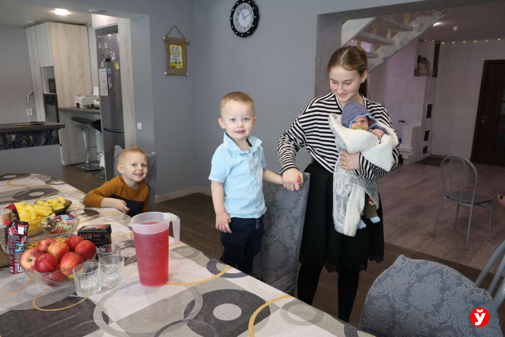 — Большая удача, что нам позвонила председатель сельисполкома и подсказала: по 240-му Указу мы могли взять кредит на реконструкцию дома. Быстро оформили все документы и начали достраиваться. Разобрали крышу, чтобы сделать второй этаж, пристройки поставили. В общем, имеем сегодня 340 «квадратов» на 13 человек! Уже в новом доме родилось четверо деток. Вот, буквально полтора месяца назад на свет появился Коленька.
