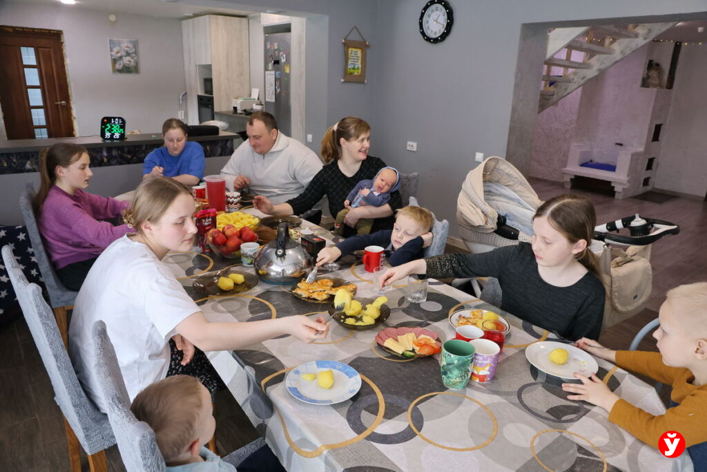 «Самый большой, на окраине деревни» — так местные описали дом Алеси и Михаила Филистовичей, к которым мы приехали в гости. Все совпало в точности: уютное двухэтажное гнездышко, просторные игровые, море игрушек и заливистый смех. И тот самый ритм жизни, который задают десять пар маленьких ножек.