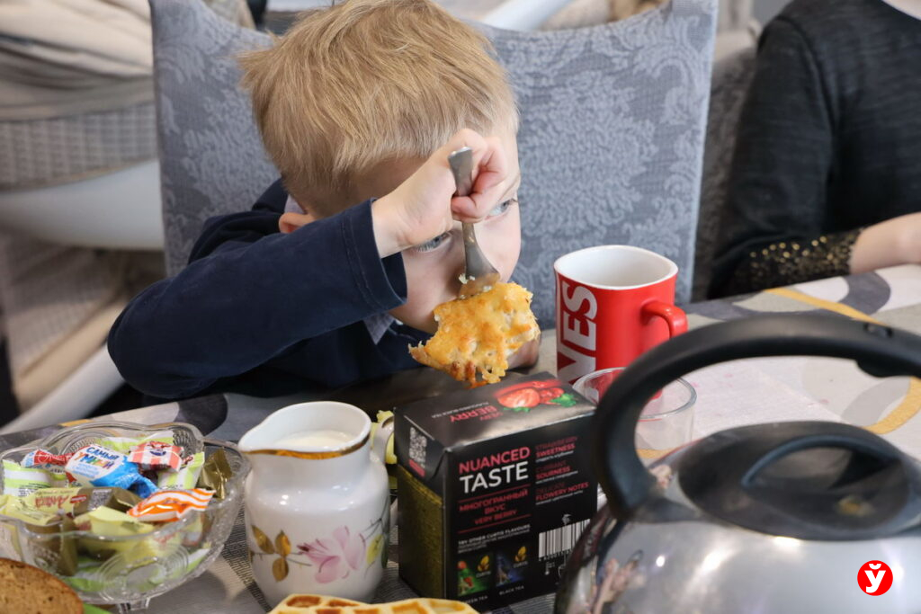 — В выходные можно чуть дольше поваляться, но в будние дни подъем ранний: будильник звенит уже в 6:20. Школьников надо разбудить, накормить, собрать. Каши ребятня не жалует, зато хлопья с молоком — святое. И какао: без него дети жить не могут. Вот так почти 3 литра молока за утро и уходит. На бутерброды — целый багет и полпалки вареной колбасы. Иногда старшая дочь с вечера пиццу приготовит: утром остается только разогреть, — не без гордости говорит Алеся. — Пока старшие в школе, я с малышами дома. Их и занять чем-то надо, и обед успеть приготовить. Маленькими порциями тут не отделаешься: если супа — то литров 6, на пюре 4-5 кг картошки уходит. Мои карапузы обожают куриную грудку под сыром: за раз в духовку отправляется 2 кг мяса и полкило сыра. И это только на один прием.