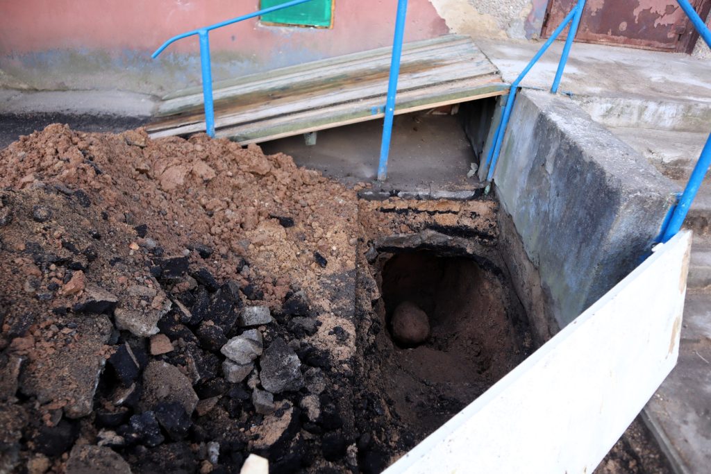 Проблемный подвал оградили лентой. Здесь начались работы по ремонту канализации.