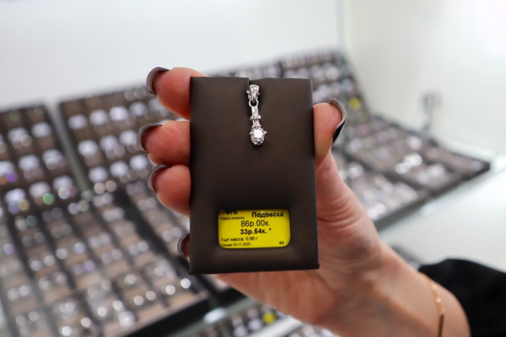 Специально для читателей Kraj.by, которые гуляют мимо ювелирных магазинов с кошельками разной толщины, девушки-продавцы представили по просьбе журналиста самый бюджетный подарок. Это – серебряная подвеска стоимостью 86 рублей, на которую прямо сейчас действует скидка в 61 процент, поэтому купить ее можно за 33 рубля 54 копейки.