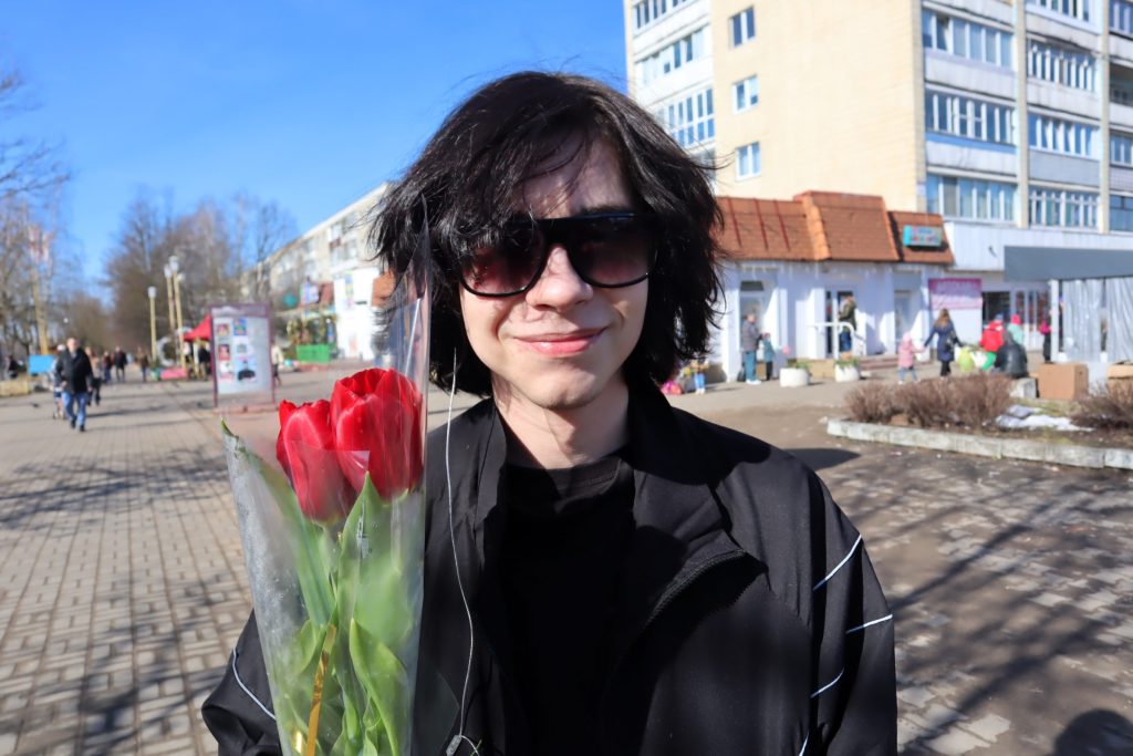 А наш портал решил вытащить из молодечненцев наружу их собственные эмоции. Журналист просто останавливал первых встречных людей с цветами в руках и приставал с простым вопросом: «А вы кого сегодня будете поздравлять?» Когда первый встречный признавался, для кого у него цветы, приставучий корреспондент, набравшись наглости, требовал: «Ну так поздравляйте прямо сейчас!»
