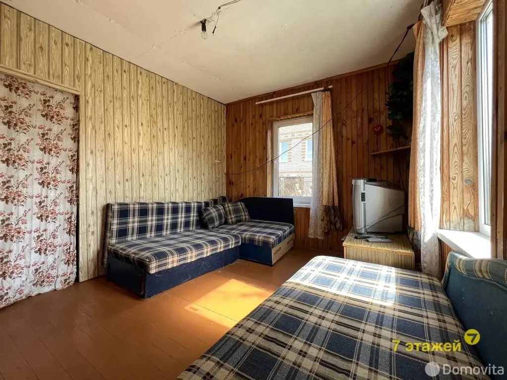 Еще один бюджетный вариант мы присмотрели в садовом товариществе «Межколхозстрой» (молодечненское направление). Общая площадь двухэтажного дома составляет 40,8 кв. м. Участок – 4,47 сотки. В доме одна просторная комната с печкой-камином. Имеется второй этаж, который смогут оборудовать новые владельцы под свои нужды.