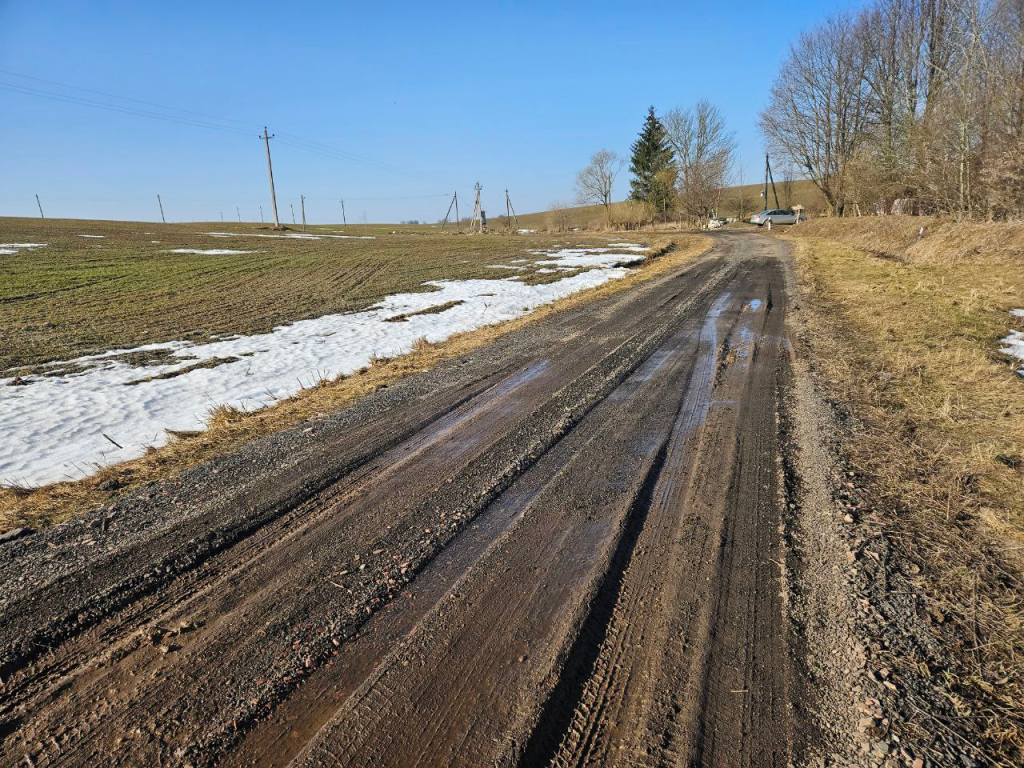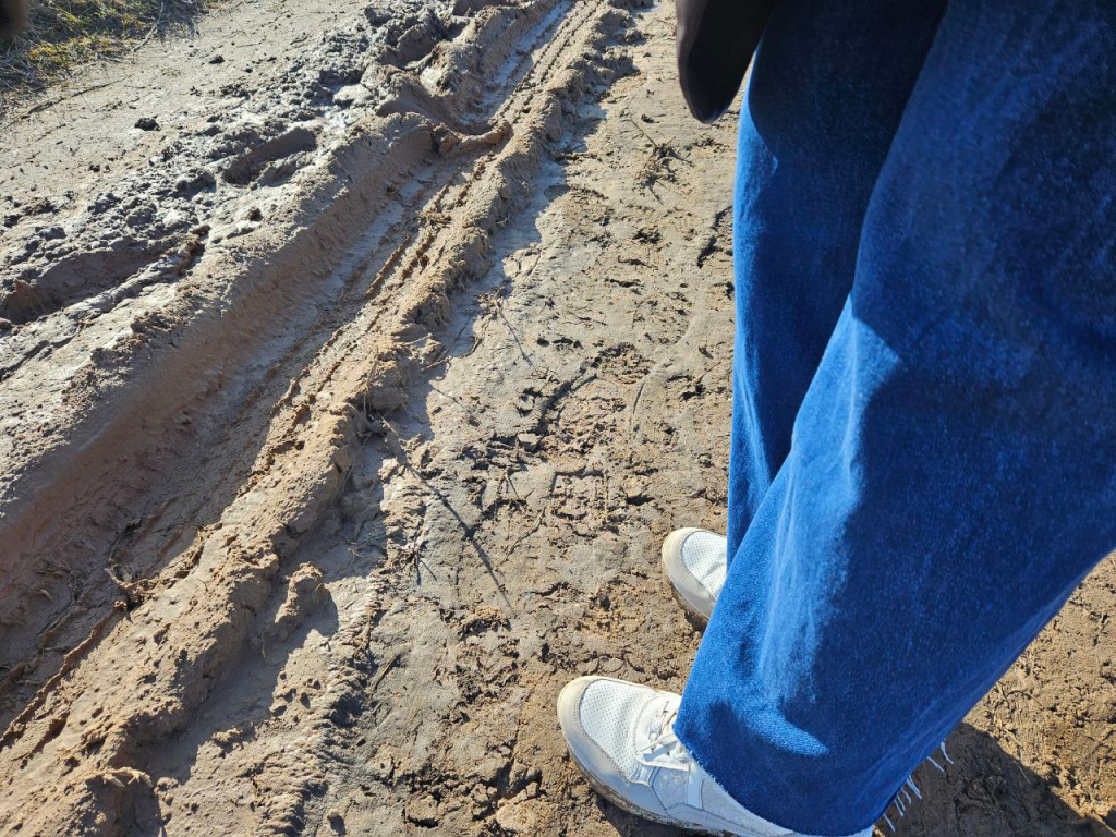 Немного дальше за ним — самое низкое место, по которому стекали талые воды. Здесь намыло песок с поля, грязно и мокро.