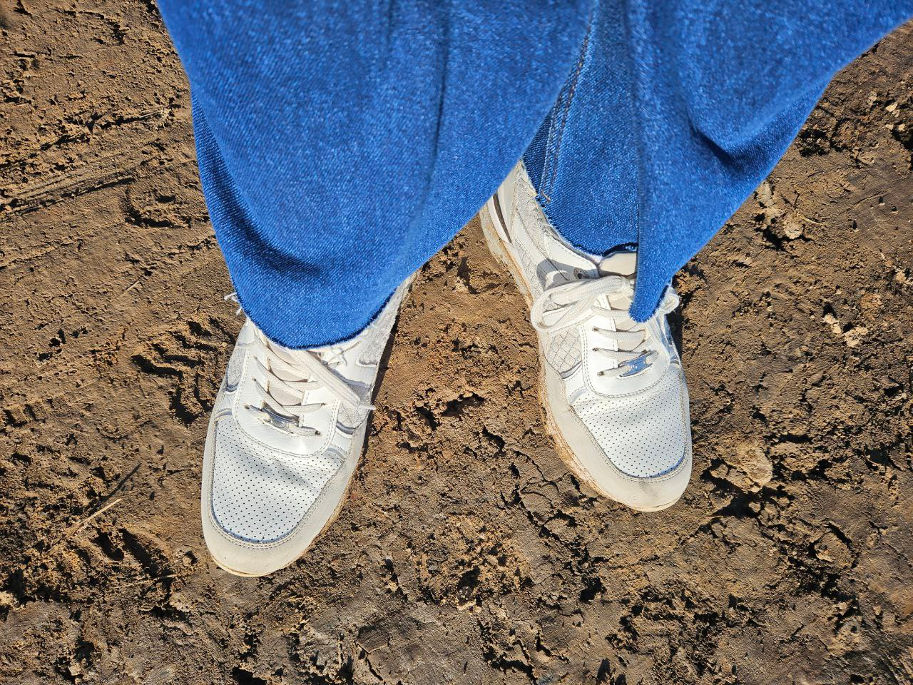 Спускаемся вниз. Вот так выглядят кроссовки после подъема и спуска по полевой дороге.
