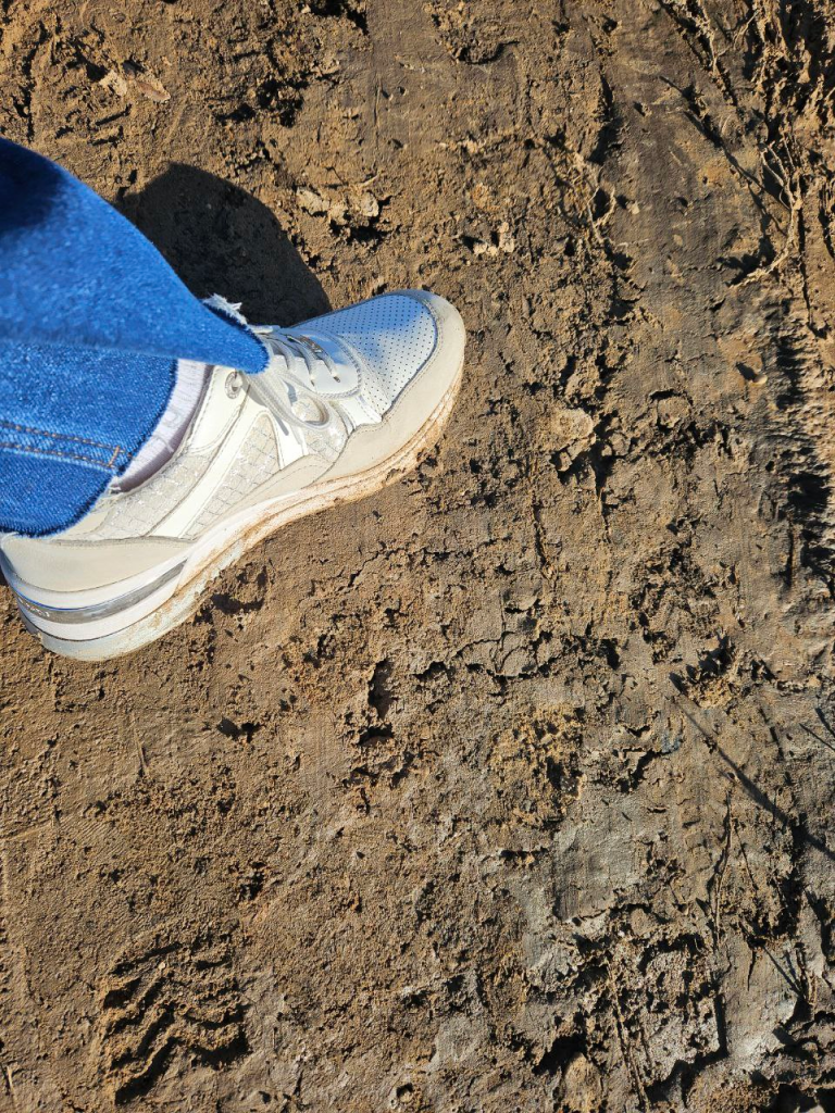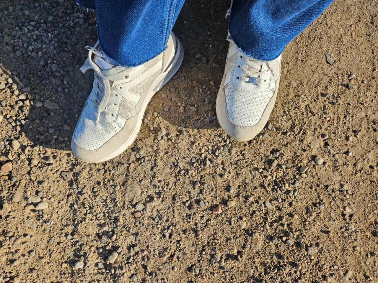Нам стало интересно: что будет с обувью, если не переобуваться в сапоги? В белых кроссовках отправились по этому же пути.