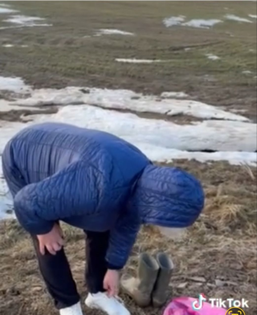 Жительница дома, расположенного в поле недалеко от Молодечно, опубликовала в ТикТок видео о том, как ей приходится переобуваться в сапоги, чтобы добраться домой пешком от заасфальтированной дороги.