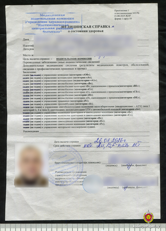 Похожий случай произошёл с жителем Костюковичского района. Он внёс ложные сведения в медицинскую справку о состоянии здоровья, которую затем предоставил в Госавтоинспекцию.