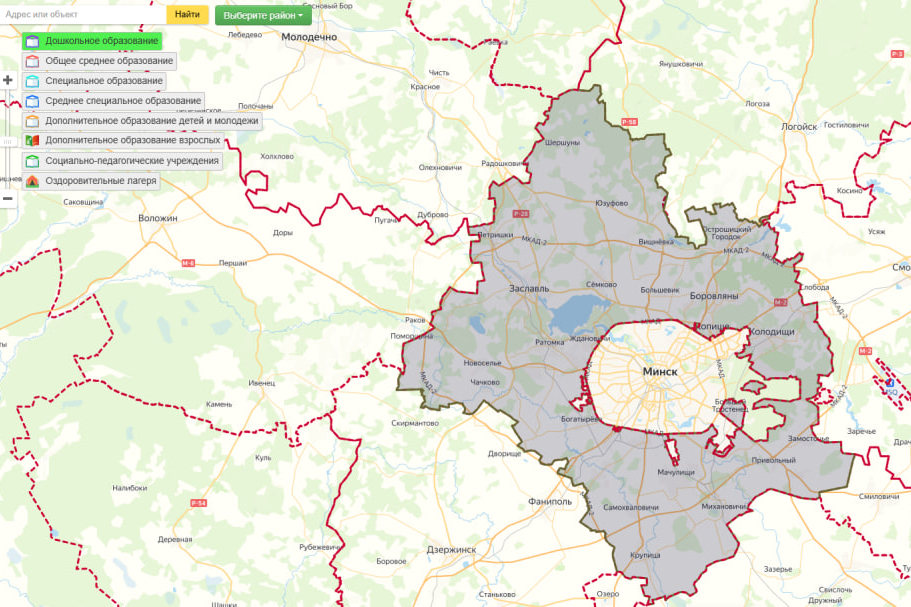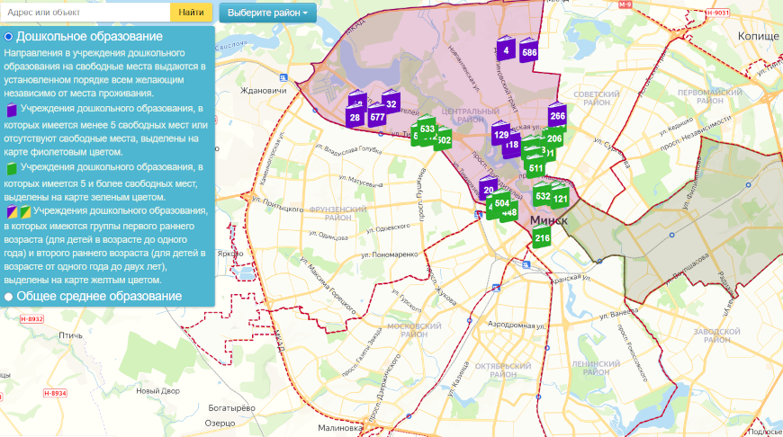 На интерактивной карте учреждений дошкольного образования выделены детские сады с группами для детей до двух лет.