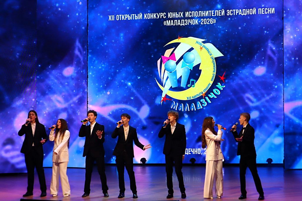 На сцене Дворца культуры в Молодечно 21 марта стартовал XII открытый конкурс юных исполнителей эстрадной песни «Маладзічок-2026». В течение двух дней 69 исполнителей из Беларуси и России поспорят за право выступить в качестве обладателя Гран-при на XXV Национальном фестивале белорусской песни и поэзии «Маладзечна-2026».