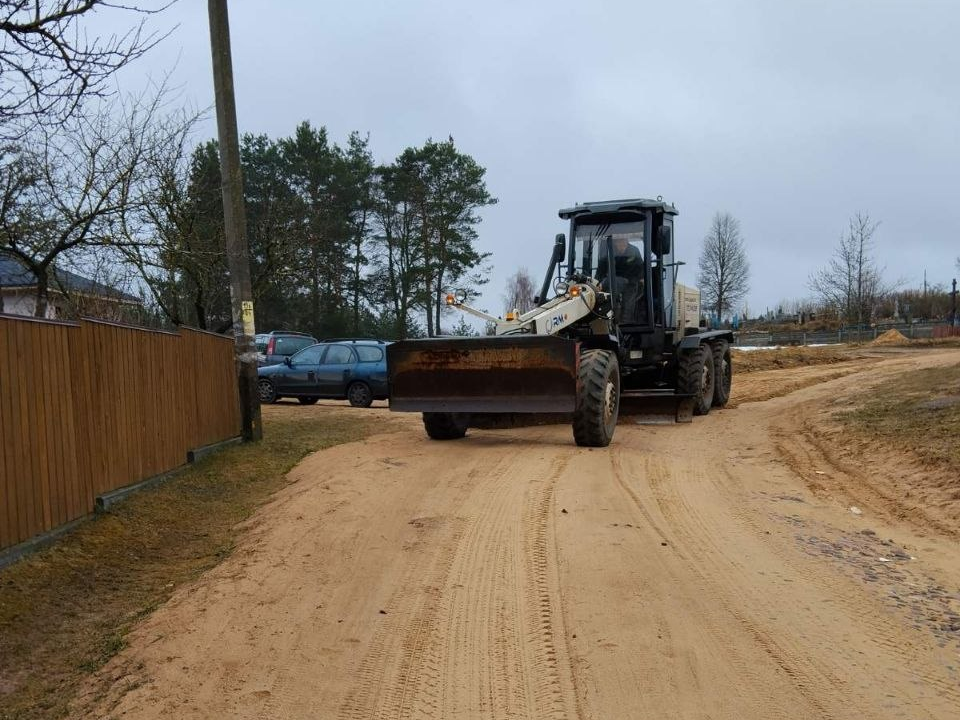 Грейдер выровнял улицу Советскую в деревне Осовец.