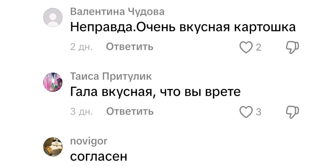 «Кому, как не мне, коренному белорусу, разбираться в действительно вкусных и стоящих сортах картофеля?! Записывайте четыре лучших», — обратился молодой человек в ТiкТок. Зрители послушали — и высказались о своих вкусах и предпочтениях. Рассказываем подробности.