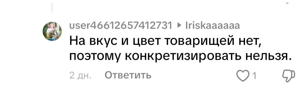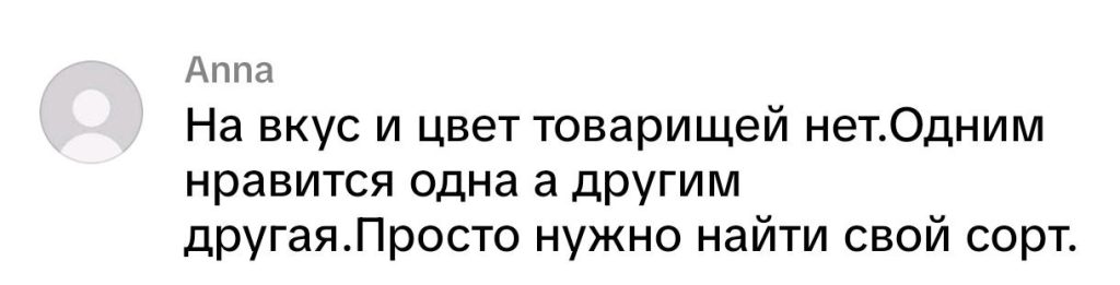 Одна из зрительниц попробовала прекратить спор, напомнив: «на вкус и цвет товарищей нет…» Её мнение поддержали и посоветовали просто «найти свой сорт».