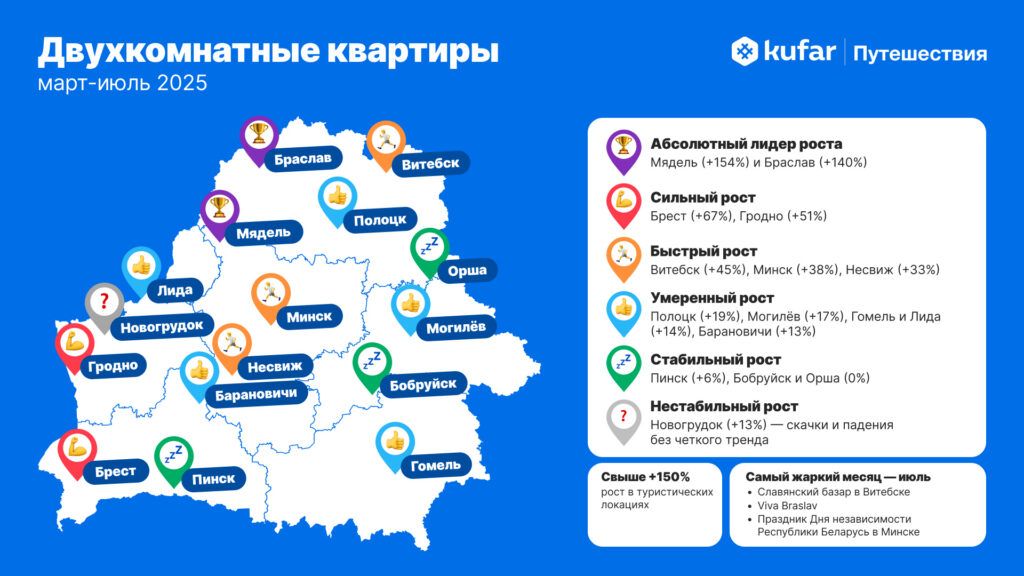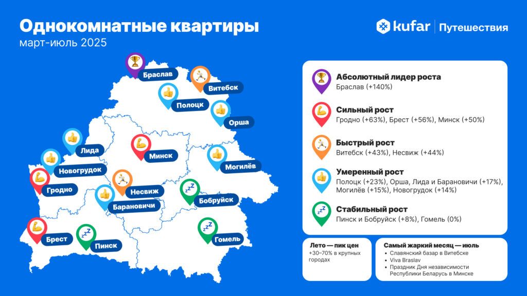 Дополнительное давление на цены создают крупные события и сезон отпусков. В летние месяцы усиливается спрос со стороны семейных путешественников, особенно на двухкомнатные квартиры. Для самих жителей региона это означает двойной эффект: с одной стороны – рост доходности от сдачи жилья в туристических локациях, с другой – подорожание отдыха даже внутри области, особенно в популярных местах вроде Нарочи.