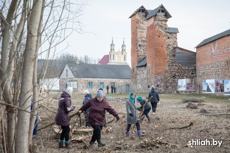 На объекте возле замка трудились представители культуры района, Кревской школы, больницы, лесничества, а также работники сельисполкома. Перед ними стояла задача навести порядок: выпилить заросли деревьев и кустарников.