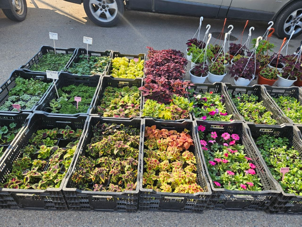 Большой выбор и саженцев деревьев, кустарников и рассады цветов.
