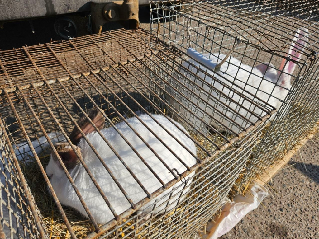 Кроме рыбы есть и живность. Так на продажу привезли живых кроликов белого, черного и серого окраса.