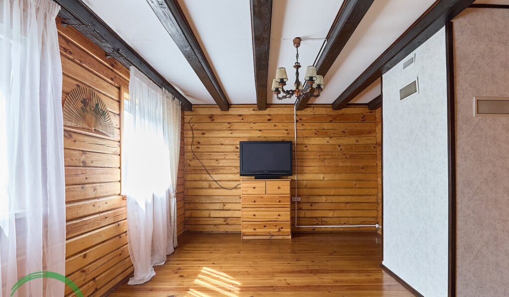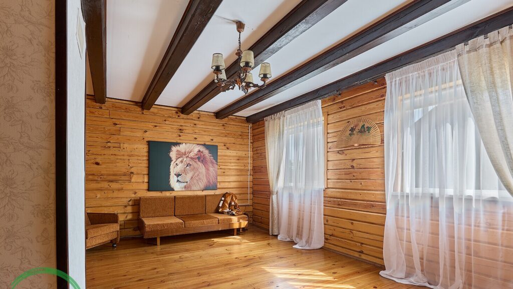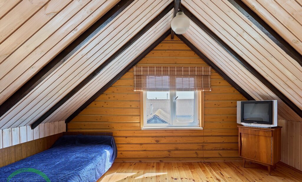 На втором этаже, расположенном под скатной крышей, находятся две отдельные комнаты, что позволяет обеспечить комфортное размещение для гостей или членов семьи.
