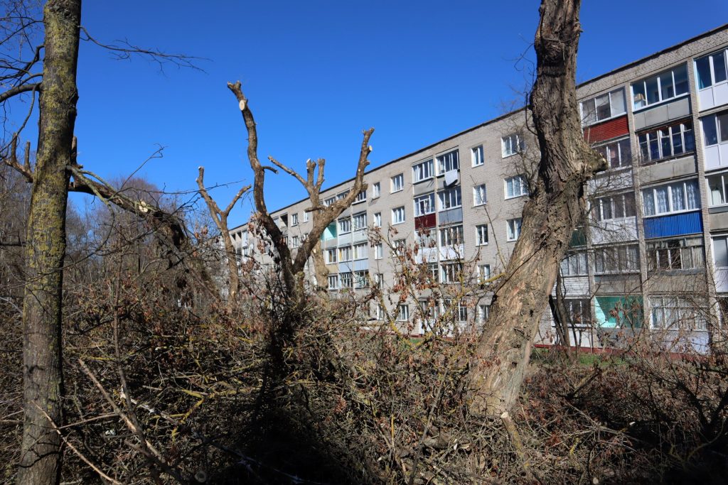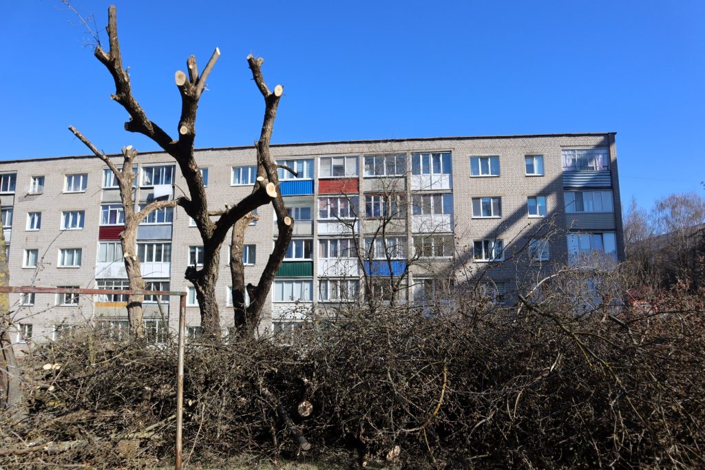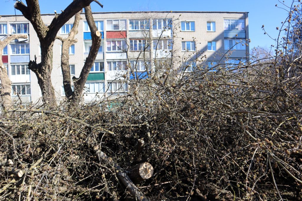 В Молодечно 3 апреля работники зелено-паркового хозяйства УП «Коммунальник» вывозят со дворов и улиц обрезанные ветви и стволы спиленных деревьев, которые были убраны по заявкам местных жителей. В деревнях и вдоль дорог за городом тоже проходит наведение весеннего порядка с насаждениями, которые пока еще не зазеленели.