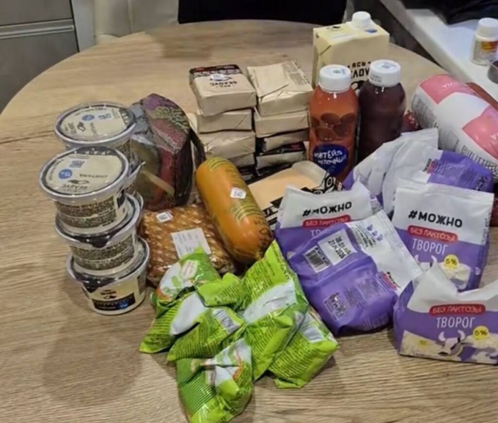 Кроме того, в подарке оказалось более 5 упаковок безлактозного творога, 5 упаковок майонеза, молоко, два молочных коктейля с шоколадным вкусом и 6 баночек сметаны.