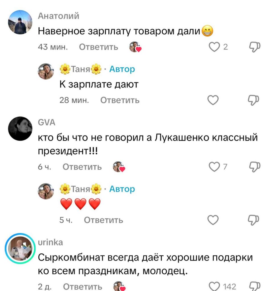 В TikTok набирает популярность видео, в котором пользователь делится неожиданным пасхальным подарком от Слуцкого сыродельного завода. Казалось бы, корпоративные подарки — привычная практика для крупных предприятий. Однако в этот раз внимание пользователей привлек не сам факт подарка, а его масштаб и повод, пишет mlyn.by.