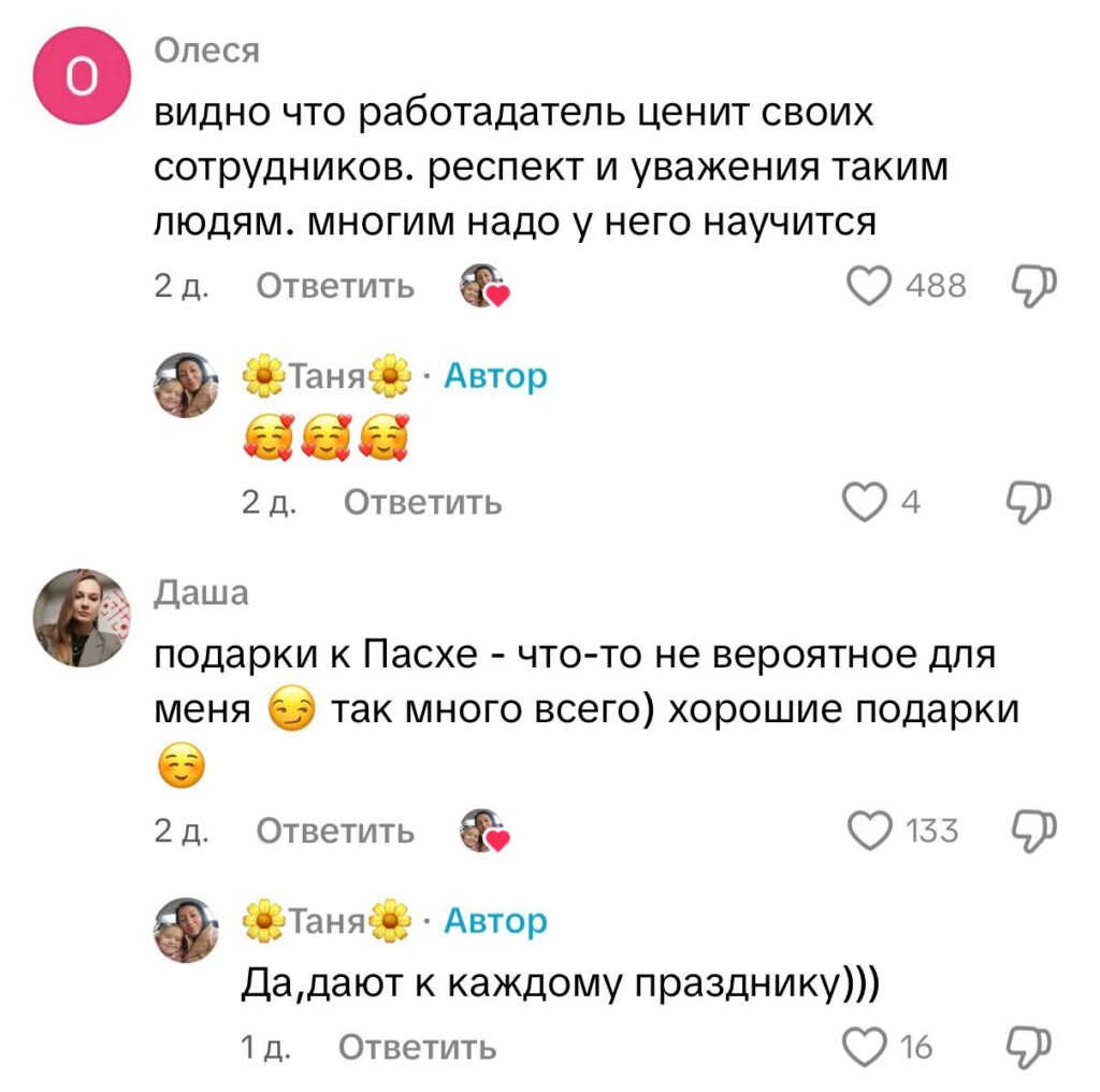 Несмотря на разные вопросы и обсуждения, общий тон комментариев остается положительным. Многие пользователи сходятся во мнении, что подобные инициативы — это показатель отношения компании к людям.