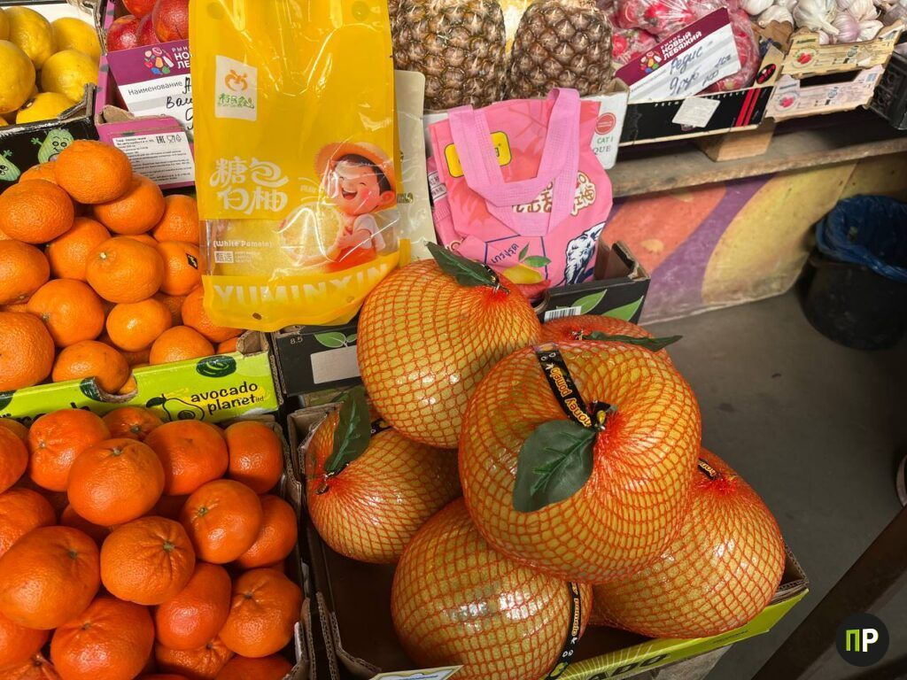 Нашли помело за 10 рублей (есть красный и обычный). Банан стоит 6,50 руб./кг. Киви — 13 рублей за кг.