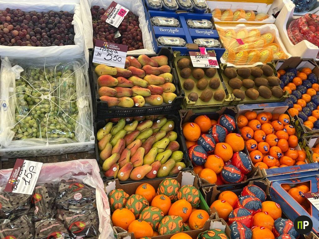 Нашли чернослив по 2 рубля кило и около 14 рублей за ящик. Груша — 5,50 руб./кг. Обнаружили дыни: ящик из 4 штук обойдётся в 100 рублей. Гранат — крупный и красный, по 10 рублей за килограмм. Завезли бананы: коробку продают за 95 рублей (там 19 килограммов).