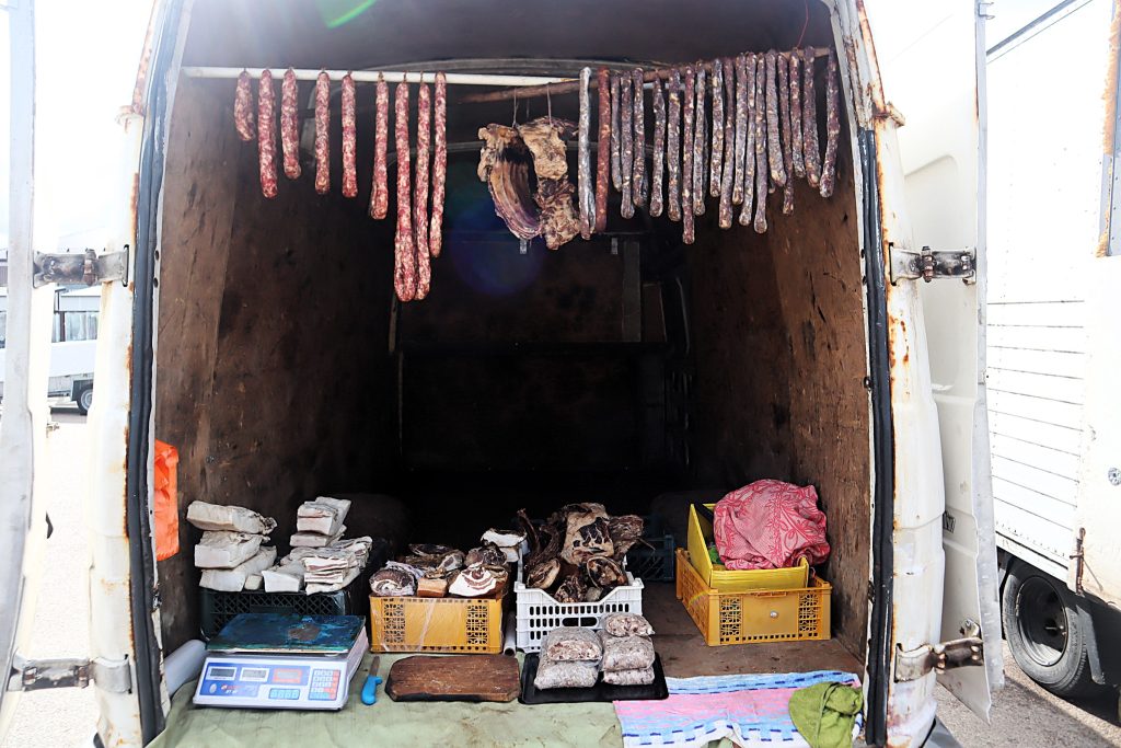 – Бабушки у меня больше покупают колбасу помягче. А вот мамы для своих детей берут высушенную. Потом возвращаются и покупают ещё, утверждая, что дети им даже попробовать не оставили, – креативно рекламирует свою продукцию Виталий.