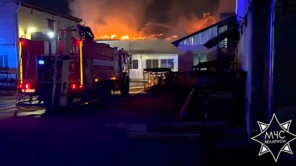 Спасатели МЧС в Молодечно глубокой ночью тушили цех предприятия