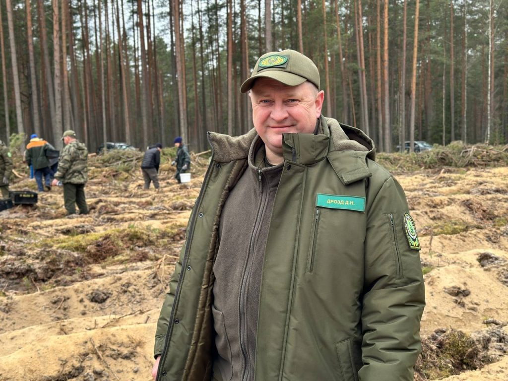 — На этом участке мы недавно посадили берёзу, потому что у неё вегетация чуть раньше начинается и прошли небольшие дожди. Сейчас вместе с командой Верховного Суда высаживаем здесь сосну. Акция «Лес! Дабро! Парадак!» Министерства лесного хозяйства проходит по всей стране. Это формирует бережное отношение людей к природе, потому что они видят, как леса создаются, и сами участвуют в этом, — рассказал директор ГОЛХУ «Вилейский опытный лесхоз» Дмитрий Дрозд.