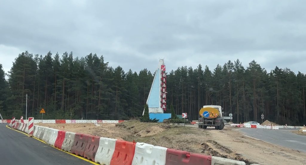 В связи со строительными работами на мосту через реку Вилия на автомобильной дороге Р28 Минск — Молодечно — Мядель перекрыт участок дороги и организован объезд вокруг стелы.